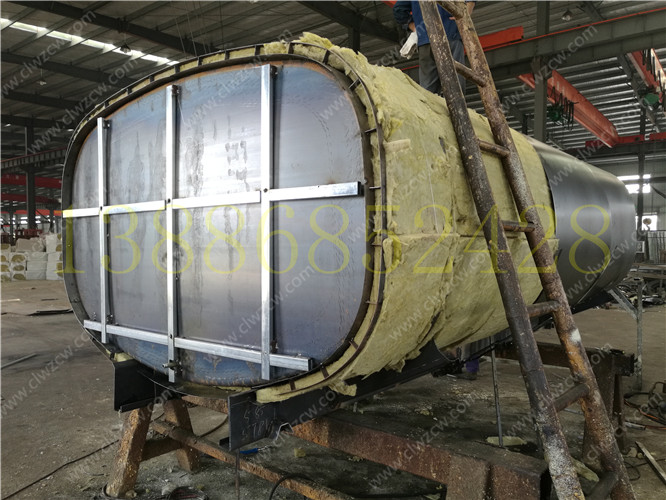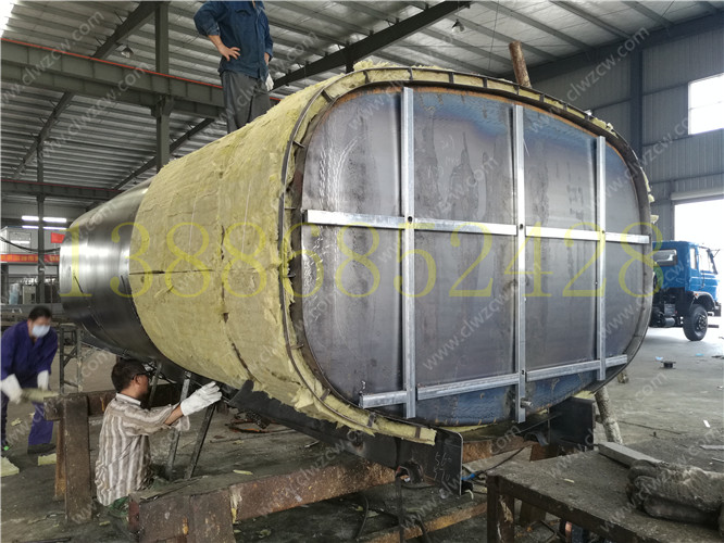 保溫熱水運輸車相比一般的灑水車在結構上多了一個保溫層,保溫層在制作上主要是在罐體外部先焊接一個支撐骨架,其厚度一般為100mm,然后再用保溫材料把骨架填充滿。在保溫材料的選擇上我們一般考慮導熱系數(shù)小,耐高溫,質量輕,吸聲性能好,絕緣性和化學穩(wěn)定性好的硬質聚氨酷泡沫塑料或巖棉。然后需要對填充的保溫材料進行修正,盈通汽車后在骨架上撞上蒙板,蒙板一般使用厚度為lmm的鋁板。