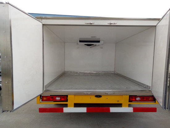 冷藏車廂體:采用國標(biāo)A級聚氨酯保溫材料,厚度為8厘米,廂體內(nèi)外采用玻璃鋼材質(zhì)全包裹。不銹鋼鎖件。包角、包邊鋁合金型材。底盤采用高強度花紋鋁板定制。可選裝肉鉤導(dǎo)軌,和底部通風(fēng)槽。