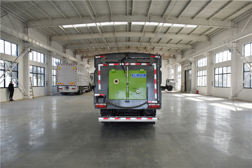 東風福瑞卡洗掃車_國六5.5方洗掃車_物業小區洗掃車_小型柴油清掃車,該車主要作用于路面的清掃作業;專用裝置為清掃裝置、垃圾箱。ABS型號/廠家:ABS/ASR-12V-4S/4M/襄陽東風隆誠機械有限責任公司;側防護裝置為專用裝置代替,后防護材料均為:Q235碳鋼,連接方式為:螺栓連接,后部防護截面尺寸(mm):120×50,后部防護離地高度(mm):370.隨底盤選裝駕駛室。選裝燃油箱,電瓶,尿素罐,儲氣筒左右安裝位置。